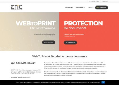 ETIC France est une entreprise spécialisée dans le Web To Print et la sécurisation des documents depuis plus de 26 ans. Elle a développé une nouvelle vision de l'utilisation du web to print en B2B, en rassemblant plus de 50 usines en France et en Europe. Cette interface EPS permet aux entreprises nationales multi-sites et internationales d'intégrer l'ensemble de leurs documents, de la carte de visite aux plaquettes, flyers, fiches produits, factures A4, enveloppes, listing en continu, carnets de commandes et étiquettes.