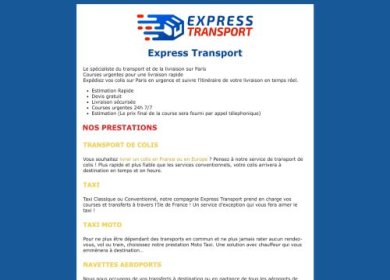 Express Transport est une entreprise de transport de marchandises à Paris.
