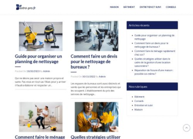 Extra Pro est une entreprise de nettoyage qui se charge de faire toutes les tâches de nettoyage et d'entretien dans des immeubles ou entreprises. Elle est composée d'une équipe d'agents de nettoyage qualifiée, qui vous apporte un service fiable et satisfaisant.