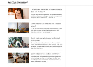 Si vous êtes intéressés par le fauteuil scandinave et si vous voulez obtenir des informations concrètes et fiables par rapport à ce meuble indémodable, visitez donc le site Fauteuils Scandinave. Le site Fauteuils Scandinave vous donne tous les renseignements dont vous avez besoin : des caractéristiques de ce fauteuil esthétique, aux différents modèles présents sur le marché, en passant par les critères à prendre en compte pour choisir votre fauteuil, etc.