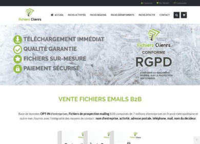 VENTE FICHIERS EMAILS entreprise France Base de données OPT-IN d'entreprises, Fichiers de prospection mailing B2B composés de 7 millions d'entreprises en France métropolitaine et outre-mer, fournis avec l'intégralité des moyens de contact : nom d'entreprise, activité, adresse postale, téléphone, mail, nom du décideur.