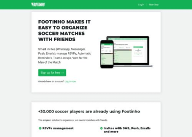C'est dans cet esprit qu'a été créé le site Footinho.com, une plateforme destinée aux amateurs qui leur facilite la vie. Il suffit de s'inscrire et le tour est joué, en quelques clics tu peux t'amuser à organiser tes rencontres et définir ton effectif sans bouger de chez toi ou appeler tes amis pour confirmer, le site se charge de tout.