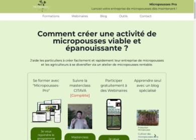 Découvrez Micropousses Pro, la plateforme idéale pour tout apprendre sur les micropousses. Que vous soyez débutant ou professionnel, nos formations en ligne interactives sont conçues pour vous. Nos cours détaillés couvrent toutes les étapes, de la sélection des graines à la récolte, avec des vidéos tutoriels, des guides pratiques et des conseils d'experts.