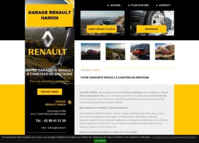 Garage Hamon, garage près de Rennes (Ille et Vilaine, 35) et Bruz. Votre garagiste Renault à Chartres de Bretagne assure entretien automobile, réparation et vente de véhicules neufs et d'occasion. Nous proposons différents services : révision, vidange, mécanique automobile, pneus, freins, amortisseurs, échappement, dépannage, contrôle technique, climatisation, diagnostic, carrosserie, peinture. Nous vous accueillons près de Saint Jacques La Lande, Noyal Chatillon, Pont Péan.