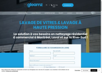Gleamz est votre spécialiste en nettoyage de vitres et entretien à Montréal, Laval, et la Rive-Sud. Avec un large éventail de services, Gleamz répond à tous vos besoins résidentiels et commerciaux. Profitez d’un lavage de vitres impeccable, ainsi que de services spécialisés comme le nettoyage à pression pour raviver pavés, terrasses, et façades. Gleamz prend également en charge le nettoyage de gouttières pour prévenir les obstructions, et offre des services de scellant de pavés et d’application de sable polymère pour maintenir leur beauté. Ses experts interviennent en hauteur pour nettoyer les panneaux solaires, garantissant leur efficacité optimale. En intégrant les technologies les plus récentes, Gleamz assure des résultats exceptionnels. Entièrement assurée, l’entreprise vous offre tranquillité d’esprit et une couverture étendue incluant Boucherville, Laval, Montréal et plus encore.