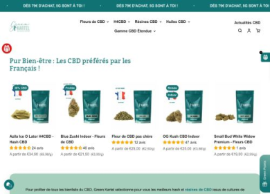 Green Kartel est votre boutique experte en résines CBD en France, principalement basé à Toulouse. Nous offrons un vaste choix de produits haut de gamme pour satisfaire toutes vos exigences en matière de CBD. Nous commercialisons des huiles CBD full spectrum enrichies en terpènes de cannabis pour traiter chaque problème spécifique, ainsi que des fleurs de CBD puissantes.