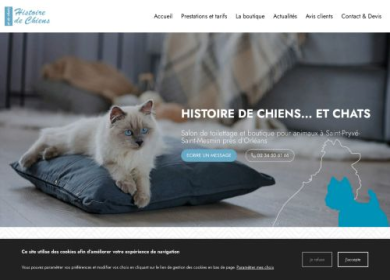 Histoire de Chiens est un salon de toilettage pour chiens et chats situé à Saint-Pryvé-Saint-Mesmin près d'Orléans et de Saint-Jean-de-la-Ruelle dans le département du Loiet (45), vous propose ses services de toilettage pour chien et chat ainsi la vente des accessoires et vêtemenst d'animaux. Pour plkus d'informations ou pour prendre rendez-vous contactez le toiletteur au Tel : 02.34.50.61.66.