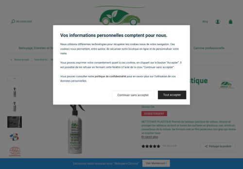 Pour le lavage intérieur de votre voiture, il est nécessaire d'utiliser des produits d'entretien voiture. La plupart des produits destinés au lavage voiture commercialisés en France sont produits fabriqués à l'étranger et sont polluants. Notre produit BIO et fabriqué en France est un rénovateur plastique qui vous permet nettoyer votre tableau de bord ou vos bas de portières par exemple. Vos plastiques seront rénovés et nettoyés ! Ce produit est destinés à tous les automobilistes souhaitant procéder au nettoyage de leur voiture ( nettoyage voiture particulier et professionnel ). Ce produit issu de la chimie verte et certifié "Ecocert" est un produit de nettoyage voiture très efficace qui a pour fonction de rénover vos plastiques voiture.