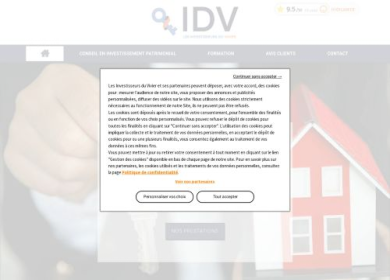 Notre équipe IDV - LES INVESTISSEURS DU VIVIER est à votre entière disposition et fait tout son possible pour vous accompagner sur votre projet, aussi bien en termes de planning que vis à vis du cahier des charges. Venez découvrir le site web de la société IDV - LES INVESTISSEURS DU VIVIER spécialisée en formation ou en conseil d'investissement patrimonial. Le site web vous propose diverses sections mettant en avant notre savoir-faire : nos prestations, nos exemples d'intervention, nos témoignages clients et un formulaire de demande de devis.