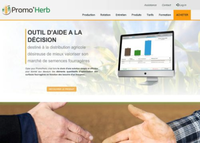 Promo'Herb est un outil d'aide à la décision destiné à la distribution agricole, et notamment à chaque exploitant agricole souhaitant améliorer son marché fourragère et profiter ainsi du meilleur des prairies. Ce logiciel permet de calculer les valeurs nutritives apportées par une parcelle en fonction des surfaces accordées aux fourrages utilisés pour l'alimentation des élevages.