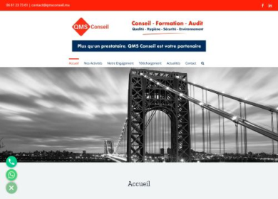 Pour accompagner ses clients, QMS Conseil se place comme cabinet spécialisé dans le Conseil, l'Audit et la formation dans les domaines QHSE (qualité, de l'hygiène, de la sécurité et de l'environnement).