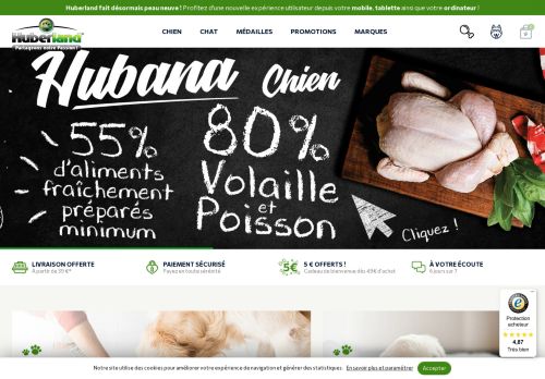 Découvrez notre animalerie en ligne Huberland.fr qui vous propose les grandes marques de croquettes et d'accessoires pour vos animaux au meilleur prix. Vous trouverez sur notre site des aliments, des produits de soins mais aussi des produits de confort comme des corbeilles, des niches ou des jouets.