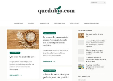 Boutique en ligne spécialisée dans les cosmétiques bio qualifiés EcoCert, QueDuBio assure à Papa, Maman et Bébé des soins de qualité, à prix tout doux, dans les plus grandes marques de produits de beauté naturels. Vous trouverez également une gamme étendue de produits à usage quotidien : savon d'Alep, savon noirs, gommage, huile réparatrice naturelle... Nos shampoings sans silicone raviront les consommateurs désireux de prendre soin de leur corps sans produits chimiques. Nos principales marques ? Tadé (soins orientaux), Sealine (soins aux sels de la Mer Morte), La Clarée (produit de beauté naturels à l'Olive), Madara (maquillage bio), Born to Bio, Snobioflowers et bien d'autres, le tout au meilleur prix. Enfin, Suzanne aux Bain et Chic et Nature combleront les plus exigeants avec des soins naturels haut de gamme. QueduBio, c'est également un blog avec des conseils, des avis de consommateurs et pleins d'autres choses. 10% de remise offerts avec le code promo "bienvenue", profitez-en !