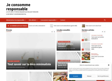 Je consomme responsable est un site de conseils dédié à la consommation responsable. Face au défi climatique auquel nous nous devons tous de participer, Je consomme responsable regorge de ressources pour vous aider à consommer moins et mieux. Comment faire des économies d'énergie ? Qu'est-ce que le upcycling ? Quels sont les meilleurs cadeaux éco-responsable ? Comment passer à une alimentation éco responsable sont tant de sujets abordés pour aider tout un chacun à réduire son impact environnemental.