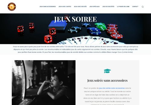 Vous êtes à la recherche d'un jeu pouvant vous permettre de sublimer votre soirée en famille, entre amis ou encore en couple. Eh bien ! Plutôt que de perdre de votre précieux temps à sillonner le Net à la recherche du jeu idéal, abonnez-vous au site dénommé « JEUX SOIRÉE » pour découvrir de quoi vous faire votre bonheur. En tant que guide pratique, ce blog met à votre disposition un vaste choix d'idées de jeux qui sauront merveilleusement égayer vos soirées. Si vous êtes passionné des jeux sans accessoires, jeux avec cartes, jeux avec des dés, jeux spéciaux, jeux de société, du poker en ligne, vous découvrirez sur ce site des informations pratiques et pertinentes qui sauront vous permettre de vous assurer une meilleure expérience en la matière. Consultez à présent le lien rattaché à cette fiche pour en savoir plus.