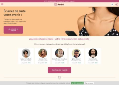 Jimini.fr est un site de voyance en ligne qui propose des consultations par téléphone, chat ou e-mail avec des professionnels de la voyance. Le site offre une grande variété de services de divination, y compris la tarologie, l'astrologie, la numérologie et la voyance par flash. Les consultations sont disponibles 24 heures sur 24 et 7 jours sur 7.
