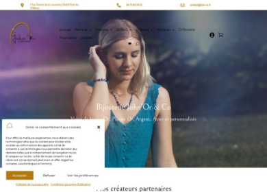 John'Or & Co est une bijouterie spécialisée dans la vente de bijoux Or, Or Plaqué, Argent, Acier et bien d'autres matières que vous pourrez personnaliser. Elle est une bijouterie made in France qui vous aide à transformer vos rêves en bijoux. Pour y parvenir, John'Or & Co travaille avec des créateurs partenaires de renom tels que Guy Laroche ou encore Annah Cruz.