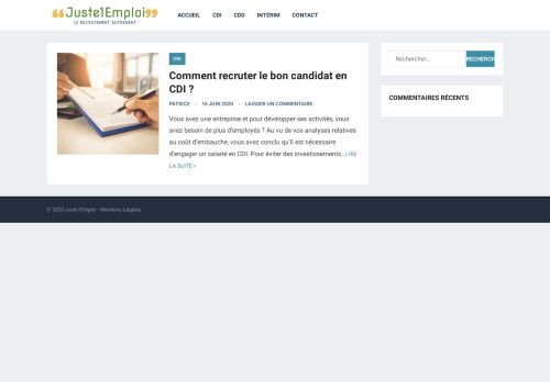 Juste1emploi.fr est un site de recherche d'emploi mettant en relation les candidats aux recruteurs.