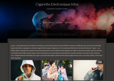 Cigarette-electronique-infos.com propose des guides pour bien choisir son matériel et des conseils de base utiles pour débuter dans le monde de la cigarette électronique, une sélection de boutiques en ligne, un annuaire des magasins, ainsi que toute l'actualité de la cigarette électronique: tests, nouveautés, promotions, santé et législation.