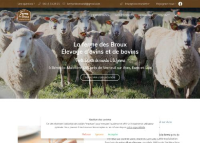 Le ferme des Broux, votre producteur de viande bovine et ovine à Bérou-la-Mulotière (28) près de Verneuil sur Avre, vous présente son nouveau site internet. Vous y découvrez l'ensemble des services et produits de votre producteur de bœuf et viande d'agneau. Votre producteur propose la vente de viande à la ferme en Eure-et-Loir (28) : vente directe et livraison de colis de viande de bœuf, colis de viande de veau, colis de viande d'agneau… Infos et réservation sur le nouveau site internet de la Ferme de Broux.
