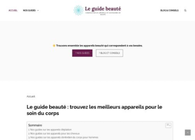 Le Guide Beauté est un site qui vous propose des conseils sur tout l'univers de la beauté. Il s'adresse aux hommes et aux femmes et permet de trouver des informations concernant des produits avant de les acheter (épilateur, tondeuse à barbe, lisseur…).