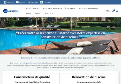 Nous sommes une entreprise Marocaine basée à Casablanca spécialisée dans la conception, la construction, la rénovation et l'entretien de bâtiments et piscines pour les particuliers et les professionnels à travers le Maroc. Nous sommes fiers de servir nos clients dans tout le Maroc et de leur offrir des piscines de qualité supérieure, qui répondent à leurs besoins et à leurs exigences.