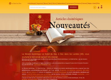 Basée dans la ville de Dax et dans le département des Landes (40), la société Le Soleil de Dax vous propose de découvrir leur produits dans le domaine de l'ésotérisme comme des livres, des CD, ou encore des bijoux. Pour plus de renseignements, merci de vous rendre sur leur site internet;