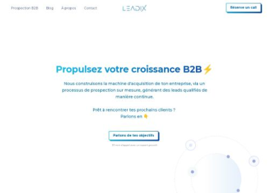 Leadix est une agence de Growth Marketing B2B. Nous trouvons des clients à nos clients et les mettons en relation grâce aux dernières techniques de Growth Marketing et Data Science. Nous construisons un processus de prospection B2B sur mesure, générant des leads qualifiés en continu et de manière semi-automatisée.
