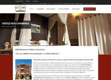 L'hôtel Les trois métis est à l'origine une maison coloniale traditionnelle entièrement rénové. Cette architecture donne à l'hôtel un charme unique à Tananarive. Il bénéficie d'un emplacement choix, à quelques pas du centre ville et prêt des quartiers commerçants de la capital.