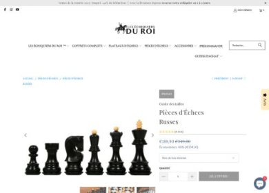 https://les-echiquiers-du-roi.fr/collections/pieces-dechecs/products/pieces-dechecs-russes) et vraiment la qualité est là pour le prix. En plus, j'ai eu un bon contact par mail avec l'équipe qui m'a conseillée d'autres modèles historiques. Moi qui suis tout de même amateur d'échecs et de tournoi d'échecs, d'histoire des échecs j'ai rarement vu une qualification telle pour un simple service client. Généralement c'est difficile de faire comprendre ce que vous cherchez.