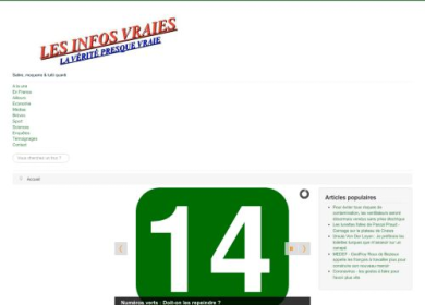 Le site "les infos vraies" regroupe et traite en parodiant les dernières actualités en France et dans le monde. Il s'agit de proposer un site d'informations ou les articles sont traités avec humour et dérision.