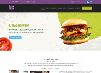 L'Hambourg Gastro, votre food truck et service traiteur près de Mantes-la-Jolie dans les Yvelines, vous présente son nouveau site internet : présentation des services de votre food truck disponible toutes les semaines dans les Yvelines (78), mais également présentation du service traiteur le week end dans les Yvelines (78) également : burgers gastronomiques, cocktails, buffets, animations possibles… Découvrez plus d'infos en vous rendant sur le nouveau site internet de l'Hambourg Gastro, votre food truck et service traiteur événementiel, traiteur à domicile à Mantes la Jolie (78) et dans les Yvelines.