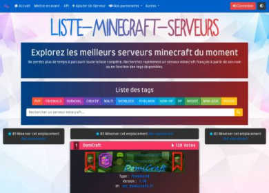 Procédez gratuitement à l'ajout de votre serveur minecraft en quelques clics. Nous proposons une diversité de serveurs minecraft qui ont tous une particularité au fond d'eux. Nous sommes la référence en terme de serveurs minecraft et disposons dans un espace dédié au créateur de serveurs minecraft pour qu'ils puissent facilement éditer leur serveur.