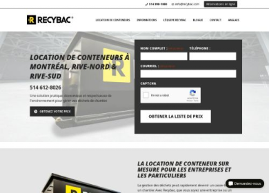 Recybac est une entreprise familiale spécialisée dans la location de conteneurs pour la grande région de Montréal, la Rive-Nord et la Rive-Sud. Proposés en quatre grandeurs différentes soit 10 verges cubes, 14 verges cubes, 18 verges cubes et 20 verges cubes, nos mini-conteneurs sont tout à fait désignés pour des travaux de rénovation, de nettoyage, de transport et de récupération de matières recyclables. En plus de la location de conteneurs, Recybac offre aussi des services d'excavation et de ramassage clés en main afin de vous faire économiser temps et argent. La réservation peut se faire 7 jours sur 7 tandis que la livraison et les services sont disponibles du lundi au samedi. N'hésitez pas à faire appel à Recybac! Vous découvrirez une équipe dynamique, professionnelle et soucieuse de son environnement.