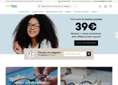 Direct Optic est le premier opticien en ligne en France et vous propose des lunettes de vue à partir de 40€ la monture + 2 verres + traitements anti-rayres et anti-reflets.