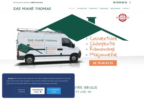 Mahé Thomas Couverture, couvreur, zingueur, maçon et charpentier pour vos travaux de couverture, pose de zinguerie, rénovation de zinguerie, fenêtre sur-mesure, charpente bois, charpente traditionnelle, ramonage, entretien cheminée, travaux de maçonnerie et rénovation maison à Senonches et Châteauneuf-en-Thymerais.