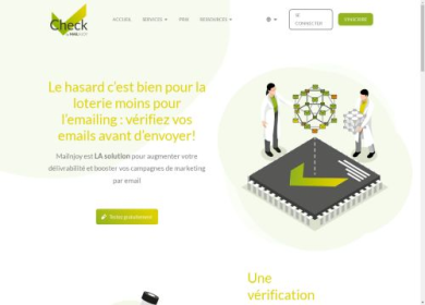Mailnjoy est une solution française de vérification d'adresses email. Destinée aux particuliers et aux professionnels qui travaillent régulièrement avec les emails, la vérification email permet d'augmenter la délivrabilité des campagnes de marketing par email et les newsletters, et permettre a celles ci d'etre mieux lues par leurs destinataires.