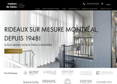 Elle offre un service de conception de rideaux sur mesure qui permet de simplifier vos projets de décoration. Il suffit de loger un appel et l'équipe de la Maison Du Beau passera chez vous pour prendre les mesures des fenêtres à habiller. En quelques jours seulement, les tissus seront taillés, cousus et installés.