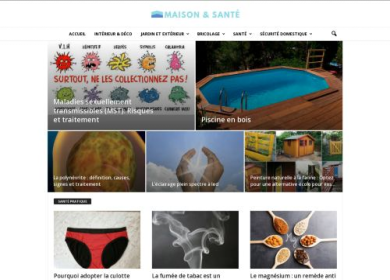 Maison et Santé est un portail d'information pour toute la famille qui propose des articles autour de plusieurs thèmes : aménagement intérieur, décoration, jardinage et extérieur, bricolage et matériaux, santé (médecine alternative, santé pratique...), sécurité domestique, sécurité des enfants ...