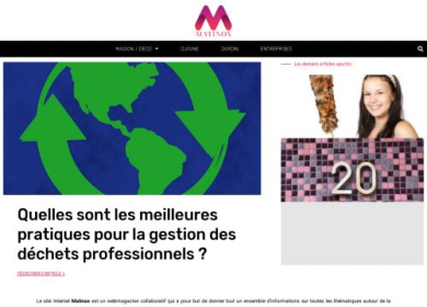 Vous recherchez un portail informatif qui traite de toutes les thématiques relatives à la maison. Eh bien ! Ne cherchez pas loin, car vous êtes déjà à la bonne adresse, Matinox. Il s'agit en effet d'un webmagazine collaboratif à travers lequel vous en apprendrez plus sur comment aménager, décorer et sublimer autant l'intérieur que l'extérieur de votre habitation pour la rendre plus vivante, plus confortable et plus agréable à vivre. Découvrez-y alors des conseils, astuces et guides pertinents qui tournent autour de la maison et de la décoration, de la cuisine et de ses ustensiles utiles, du jardin et son aménagement et bien plus encore. Ce site propose aussi des ressources qui sauront aider les professionnels à gérer efficacement leur entreprise en vue de leur réussite. Rendez-vous-y pour plus de détails.