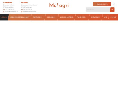 Mc2agri est une entité commerciale regroupant la SARL ANDRE et la SAS BRIANT située à Chaveignes et Manthelan. Elle vous fournit différents types de matériels agricoles et de motocultures d'une performance extraordinaire. Vous avez la possibilité de location du matériel pour l'exécution de vos tâches agricoles. Mc2agri est dotée d'une équipe très jeune, dynamique et courtois pour répondre très rapidement à vos préoccupations. En partenariat avec des sociétés de renommée, elle vous garantit un travail de qualité.