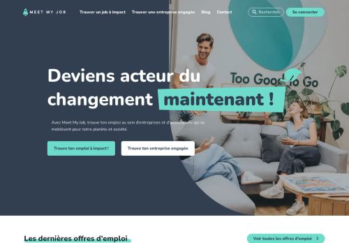 Rejoignez Meet My Job, le site leader en Belgique pour les emplois et stages à impact positif pour l'environnement et la société. Explorez nos offres dans des entreprises responsables et donnez une nouvelle dimension à votre carrière. Trouvez un job avec des valeurs qui vous ressemblent !