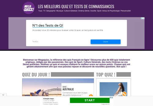 Vous aimerez connaitre votre niveau de connaissance sur des sujets politiques, des célébrités, la musique, ou le cinéma. Optez pour le site méga quizz. Il vous permet d'évaluer votre savoir, mais surtout d'apprendre à s'apprécier soi-même avec les questions de la psychologue. Visitez le site et passez de bons moments entre amis avec les défis que propose la plateforme.
