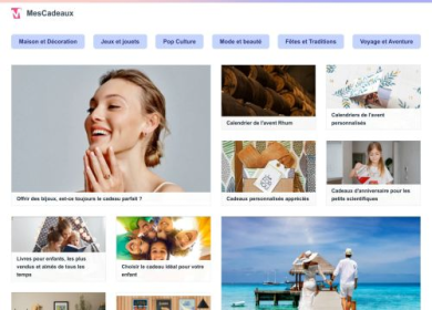 Pourquoi devez-vous réfléchir pour faire plaisir à un proche si vous pouvez vous rendre sur le site Mes Cadeaux ? Oui, le site Mes Cadeaux vous sert de guide pour choisir le bon cadeau, quelle que soit l'occasion. Vous y trouvez ainsi des conseils et des recommandations pour offrir un cadeau original à un passionné de Geek, à un passionné de cuisine, aux enfants, à une femme ou encore à un aventurier.