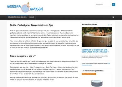 Êtes-vous à la recherche d'un guide d'achat capable de vous permettre de bien choisir votre spa ? Si oui, le portail que voici reste sans nul doute votre meilleur atout. Y recourir vous permet de découvrir en effet une liste des meilleurs spas de l'année 2021, mais aussi les critères importants à prendre en considération pour bien choisir votre spa. Ce portail vous propose aussi d'aller à la découverte des modèles de spa actuellement existants. Si vous souhaitez vous faire une idée sur les différences qui existent entre le spa et le jacuzzi, n'hésitez pas une seule seconde à vous référer à cette même plateforme grâce à laquelle vous trouverez également les différents types de spas disponibles sur le marché en vue d'un choix adapté à vos besoins.
