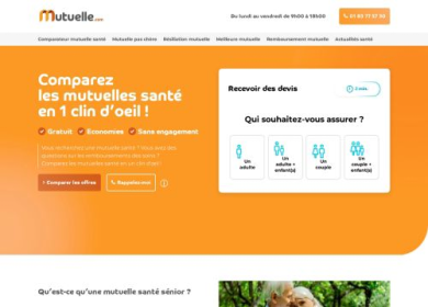 Mutuelle.com, le comparatif mutuelle gratuit en ligne vous donne toutes informations sur la mutuelle santé. À l'aide d'un devis mutuelle, comparez les tarifs mutuelles et les garanties santé de chaque mutuelle partenaire et adhérez à la mutuelle santé.