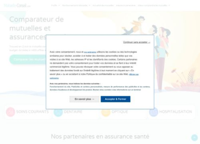 Mutuelle, complémentaire santé, assurance santé, vous cherchez une couverture santé ? Mutuelle-conseil est la pour vous simplifier votre choix de mutuelle. Votre comparateur d'assurance santé vous permet de comparer plus de 200 garanties santé en quelques secondes. Des mutuelles à partir de 5,42 euros ou des mutuelles haut de gamme, choisissez la couverture santé la plus adaptée à vos besoins. Vous trouverez ainsi sur mutuelle-conseil, des mutuelles seniors, mutuelle familiale, mutuelle dentaire etc.