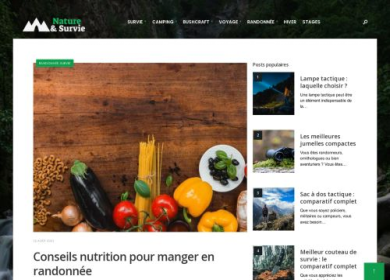 Vous recherchez un portail qui propose l'actualité sur le matériel dédié à la survie et au camping en vue de meilleurs choix adaptés à vos besoins et votre budget. Eh bien ! Nul besoin de chercher ailleurs, puisque vous êtes déjà à la bonne adresse, Nature & Survie. Il s'agit en effet d'un blog qui se veut le guide de référence dédié au meilleur matériel dédié à la survie et au camping. Trouvez-y alors un catalogue assez large de comparatifs et de guides d'achat pouvant vous permettre de trouver le plus facilement possible le meilleur matériel dédié à la survie, au camping, à la randonnée, au bushcraft, au voyage, à l'hiver et au stage de survie. Pour en savoir plus, consultez le lien rattaché à cette fiche.