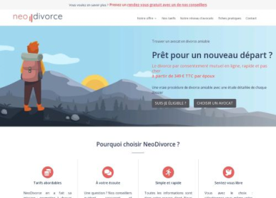 Le divorce à l'amiable est une procédure simplifiée pour les couples qui souhaitent mettre fin à leur mariage sans passer devant le Juge. NeoDivorce regroupe différents cabinets d'avocats qui proposent de conseiller et de représenter chaque époux au cour de cette procédure de divorce par consentement mutuel. Le site NeoDivorce présente ainsi plusieurs offres de divorce, adaptées à tous les types de liquidation du régime matrimonial. Les époux qui se séparent peuvent ainsi choisir quelles modalités ils souhaitent pour la garde des enfants, les biens immobiliers ou encore la prestation compensatoire. Chaque avocat assiste son client dans les décisions et les démarches pour mener le divorce amiable à son terme et démarrer une nouvelle vie.