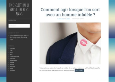 Vous vous posez la question de savoir comment vous y prendre pour profiter de bons plans et de conseils avisés en lien avec divers univers de la vie courante. Eh bien ! La meilleure des choses à faire pour vous garantir une bonne satisfaction est de simplement recourir au site www.notreselection.com. Qu'il s'agisse de l'automobile, de la décoration, de l'immobilier, de l'informatique, de l'internet, des services, du shopping, du sport, du tourisme, des bijoux, et divers, ce portail vous propose des ressources informatives aussi utiles que pertinentes pouvant vous permettre d'améliorer votre quotidien en la matière. Recourez-y à présent et vous n'en sortirez que pleinement ressourcé.